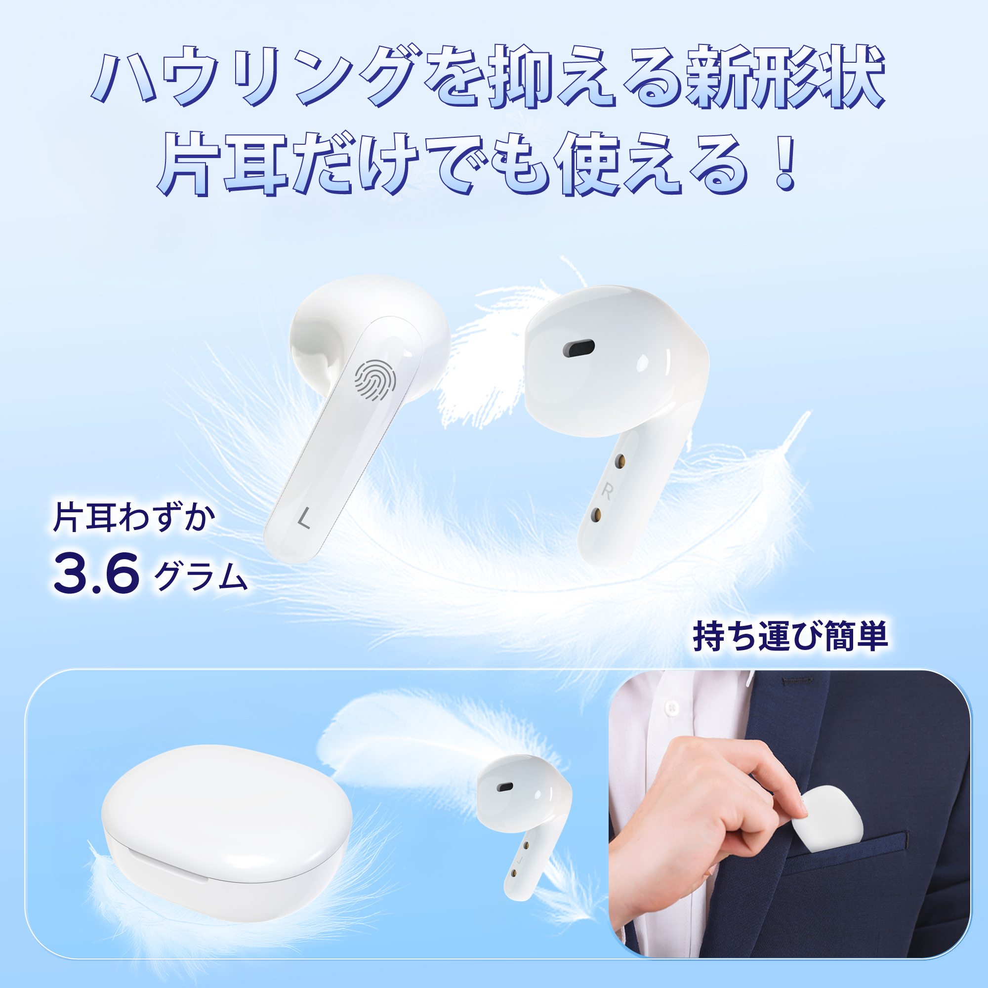 さらに、コンパクトな充電ケースで持ち運びも簡単。