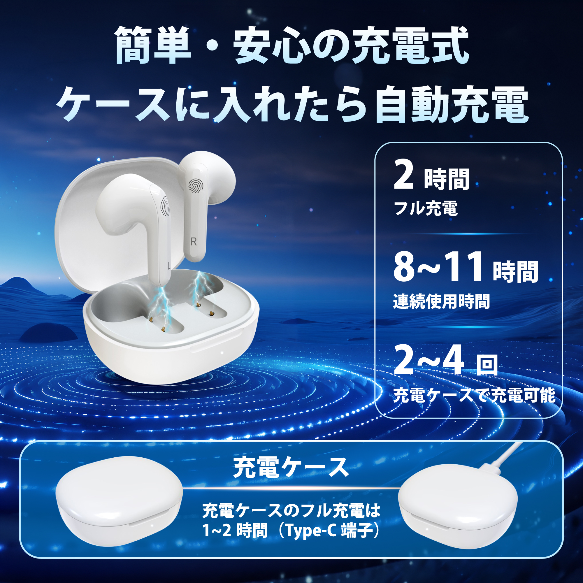 専用の充電ケース付きだから、外出時や旅行でも安心です。